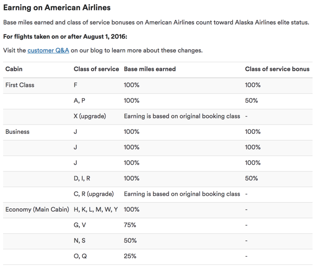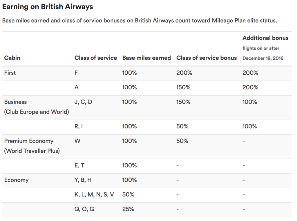 One thing that does improve the value proposition of premium economy, however, is its (often significantly) higher mileage-earning than traditional economy. For example, when crediting a BA premium economy (W) fare to Alaska airlines, the (status) mileage earning is as good as a typical business class fare (D, I, R) on American Airlines: