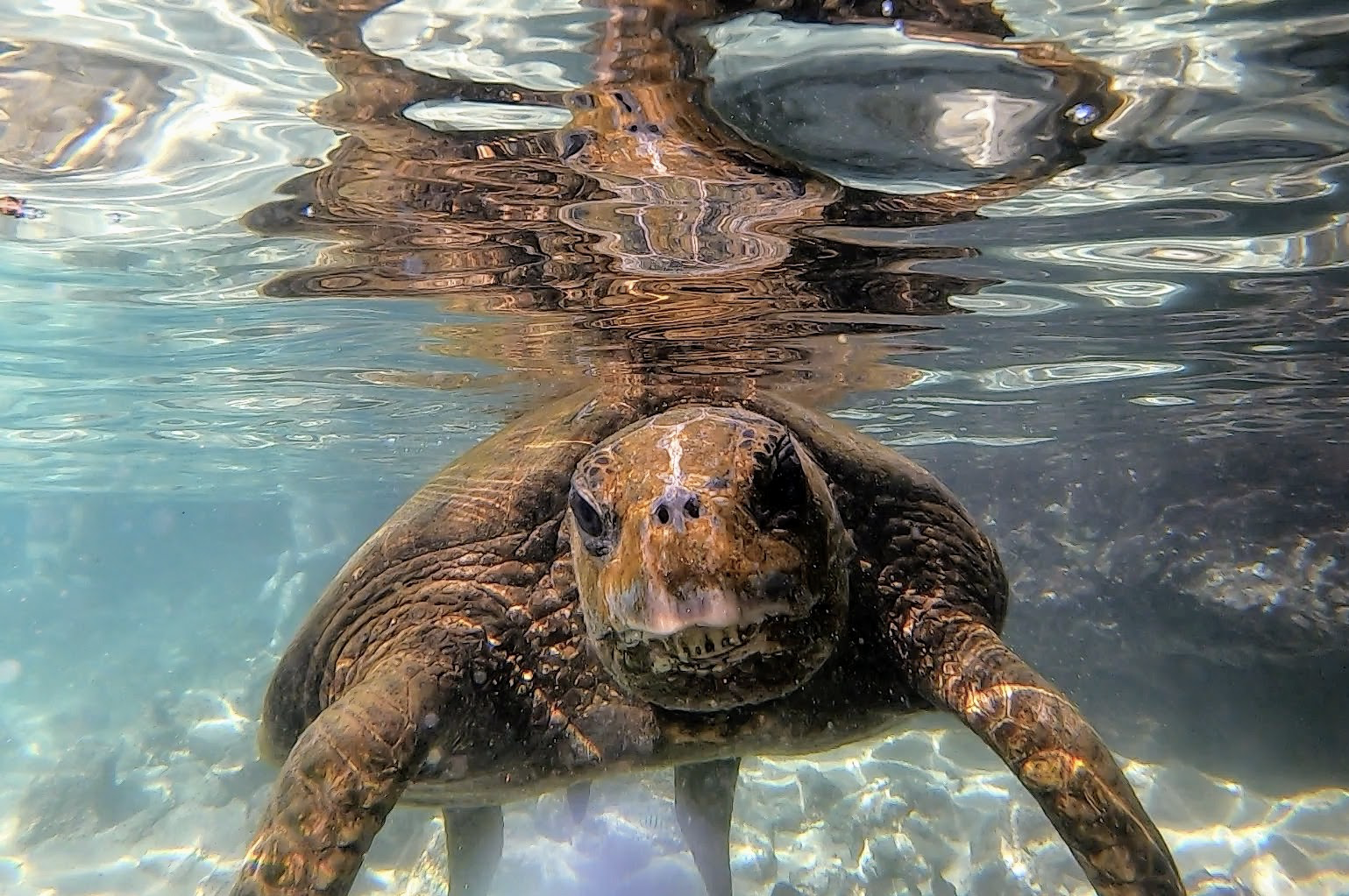 - “The turtles basking in the sun are Hawaiian green sea turtles (Honu). You can sometimes also encounter the more rare Hawksbill Turtle (Honu’ea) in the water but not basking on the beach. Fun turtle trivia: sea turtles almost never bask on the beach. Several species of green sea turtles do this but only at a few locations worldwide. Hawaii is one of those!”