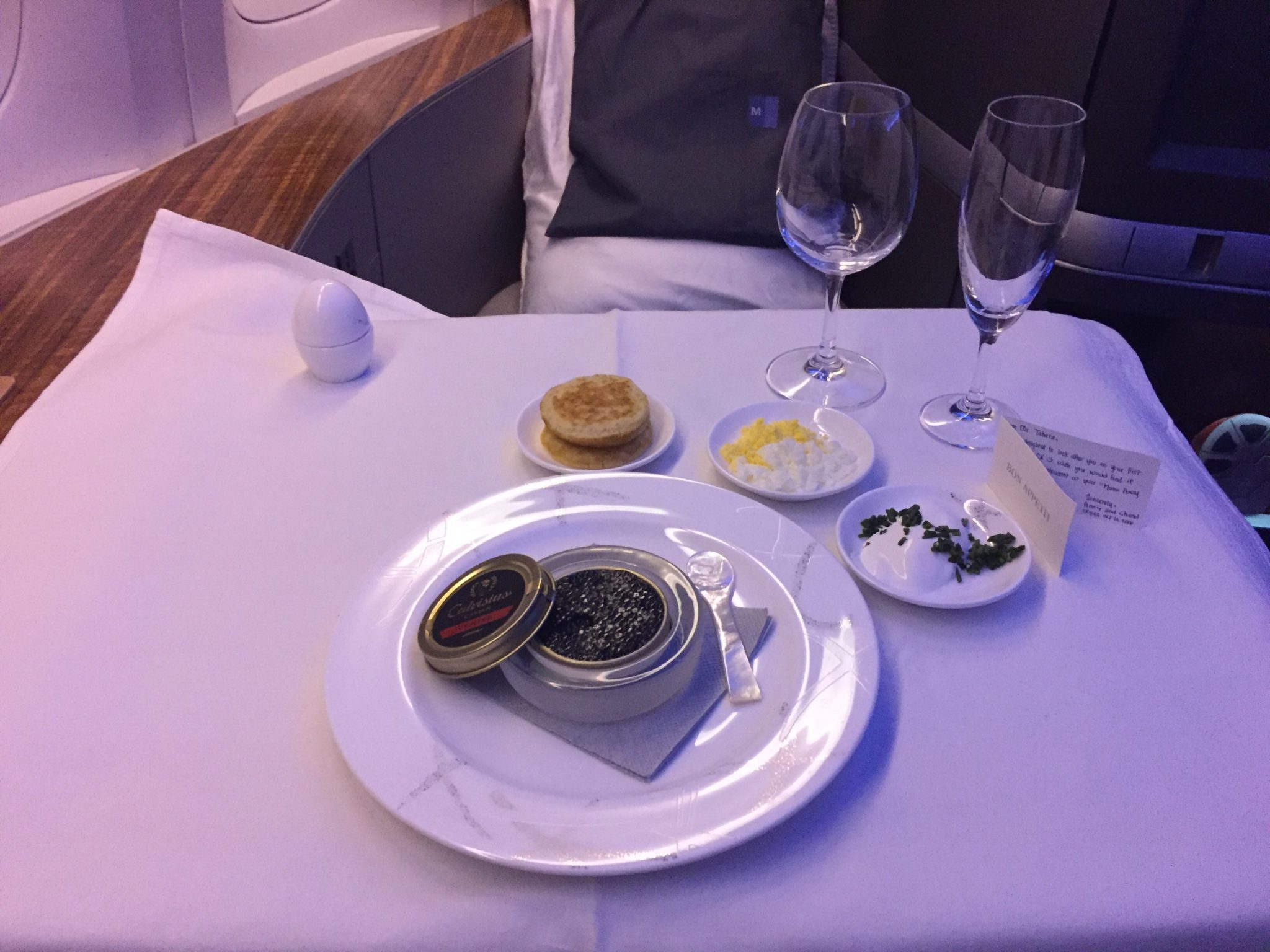 Holy mother of pearl (spoon)! Caviar on a plane!