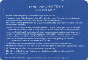 In May 2016, I signed up for Founderscard and detailed my experience here. One of the benefits of Founderscard is Total Rewards Diamond status, which is useful for people who go to Vegas and Atlantic City. I enjoyed the benefits of TR Diamond in my last 2 trips to Vegas since receiving the status, and recently booked my free 4 night stay at the Atlantis resort on Paradise Island in the Bahamas. I had first heard about this benefit via TPG’s post, and originally people were skeptical about it and thought there would be some gambling requirement, etc. I thought I would write a post today for anyone who is planning to go. For the current benefit, the trip must be booked before Jan 31, 2017, with travel before the end of Feb.