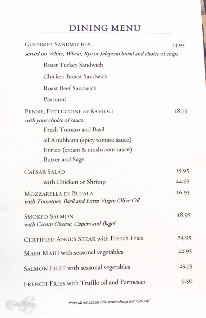 | One Sushi and Sake Sampler at Nobu (6 pieces of sushi and 2 shots of sake) | $35 + $8 gratuity/VAT | Nobu is a fine-dining Japanese restaurant located in the Casino. The sampler was delicious, but extremely small. It’s more like a snack. The sake tasted like Sho Chiku Bai. VAT and gratuity are also complimentary (covered by the pass). |