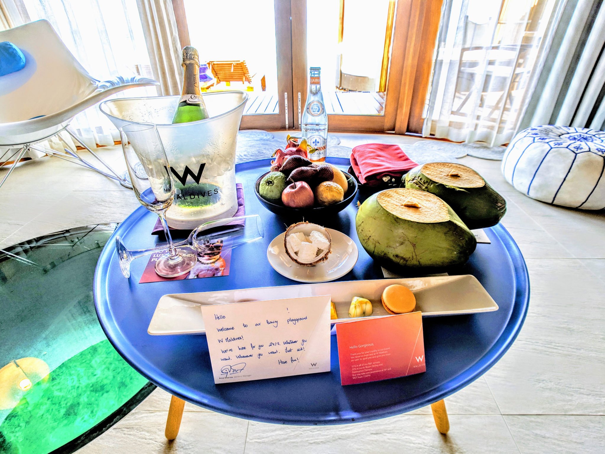 As they unloaded our luggage onto the little plank, I commented: “This is a pretty nice resort.” The GM laughed and said, “Welcome to the W Maldives!”