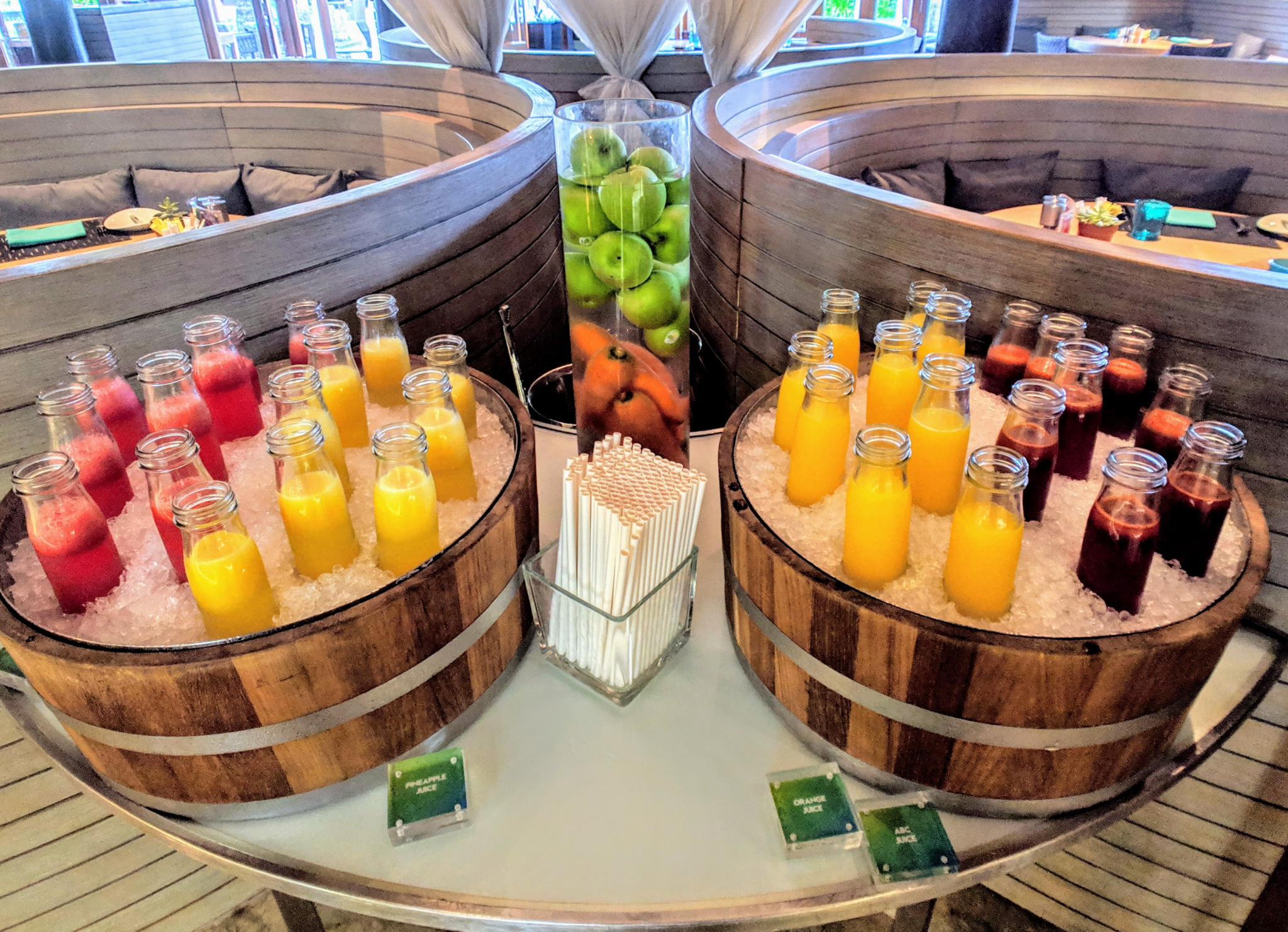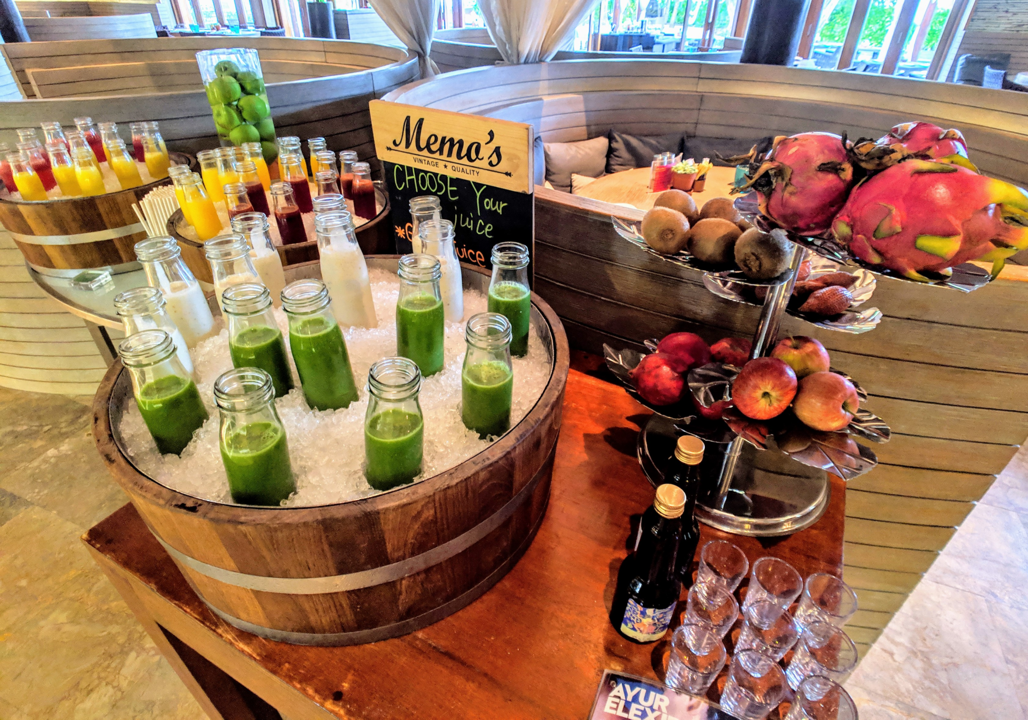 As for drinks, they had a variety of fruit juices, smoothies, some special elixir, and also champagne, Bloody Marys, and occasionally fresh coconut.