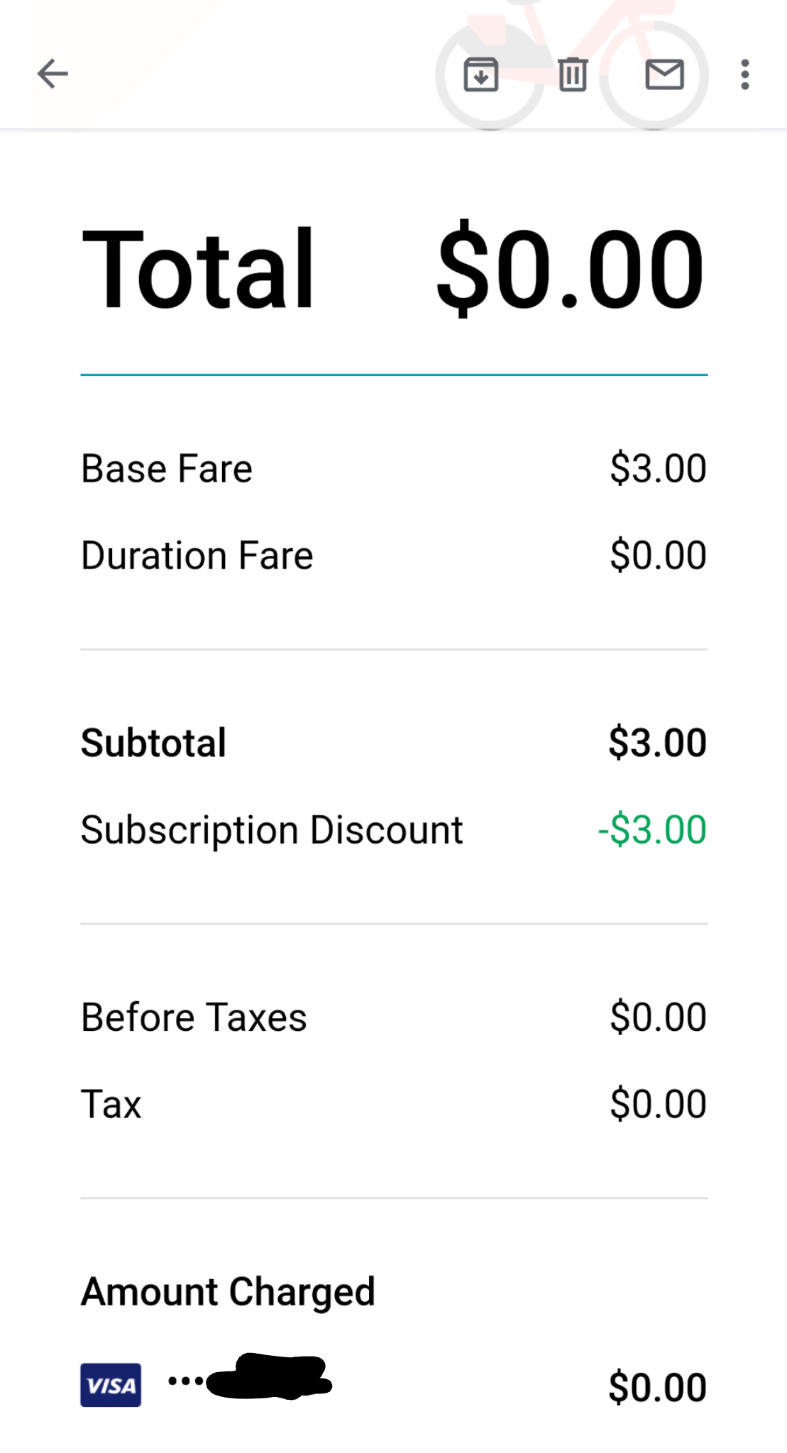 I decided to hop on one the other day to see what would happen. I finished my ride and waited for the receipt.
