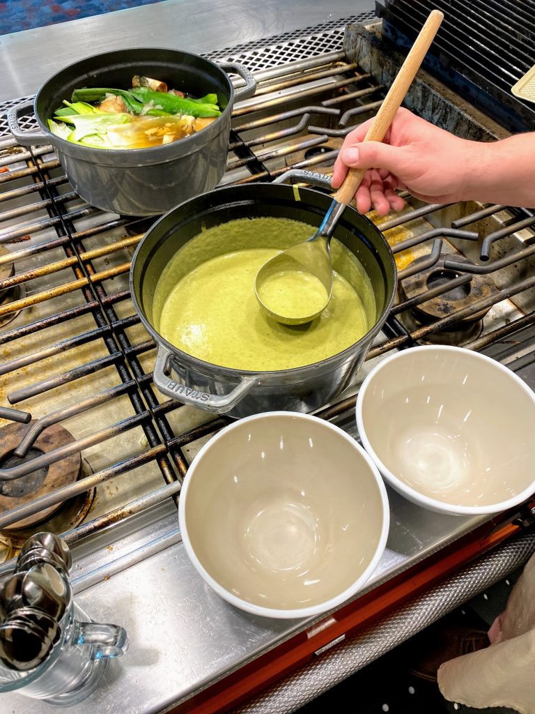 | Conscious Cooking ($35) | I was the only one who showed up, so I got to work with Chef Gabe 1:1. Private cooking lesson! It was a really fun lesson and we went over knife skills and how to use all ingredients without waste. We made a leek and potato soup with leftover ingredients from the day, which he kindly saved for dinner and brought it out to my party. My group thought my soup tasted better than the actual soup featured on the menu! 🙂 |