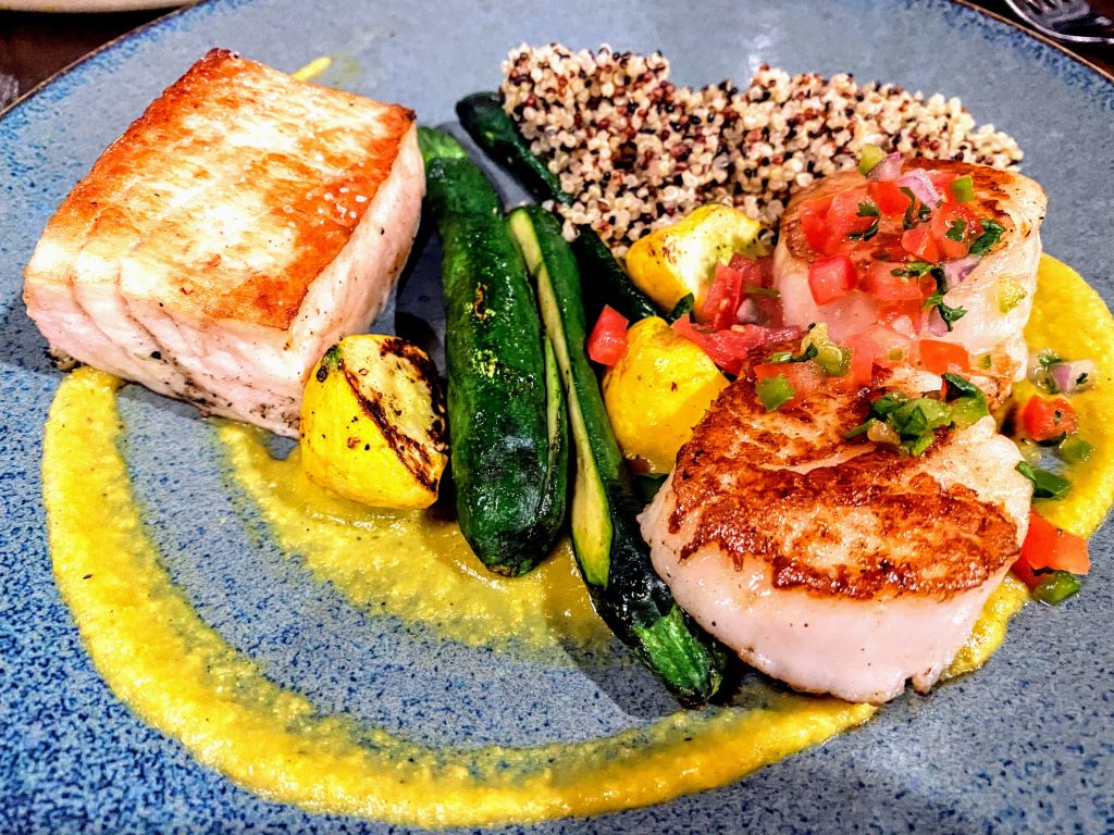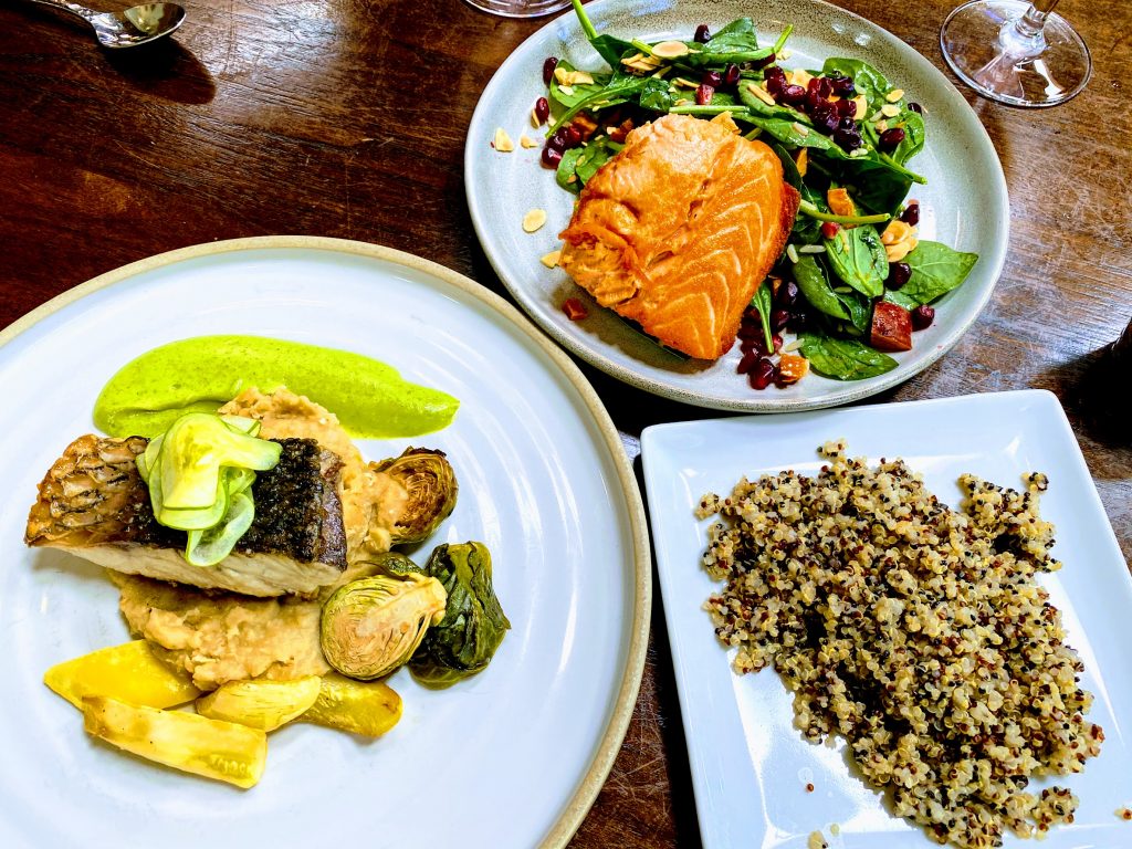Dinner – I sometimes ordered the soup of the day and usually ordered the chef’s creation, along with another salmon and quinoa, because it was really just that good. My husband usually got the butcher’s cut too, which was always amazing (lamb chops, top sirloin, and strip steak while we were there). We would usually order one of every item from the dessert menu and share it too.