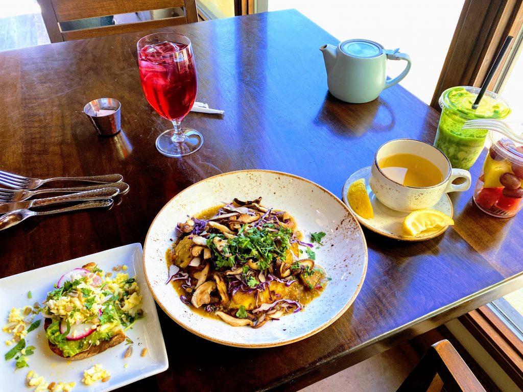 Breakfast – I usually ordered an avocado toast, an omelet or huevos rancheros (they use amazing corn tortillas from a local family down the street), and sometimes steel-cut oatmeal with toppings. My friend loved the pecan pancakes.