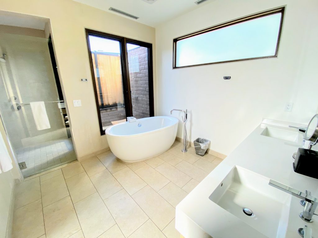 Overall, our room was more modern and had a larger interior than the Solace King, which we also had the opportunity to view. The Solace King had a lot of damage and was an extremely narrow and small room. Both room types have an indoor and outdoor shower, as well as an outdoor fireplace.