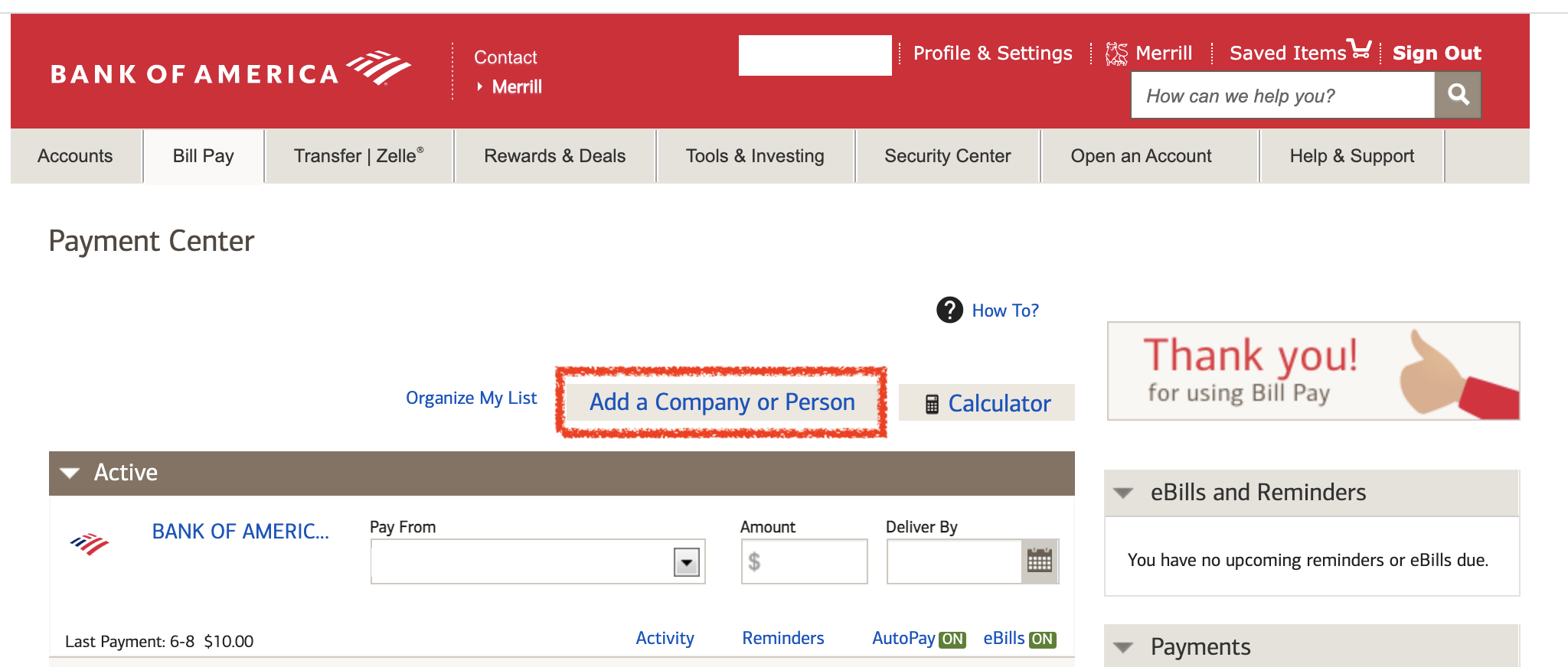 - Sign into your account and click on “Bill Pay” in the menu bar